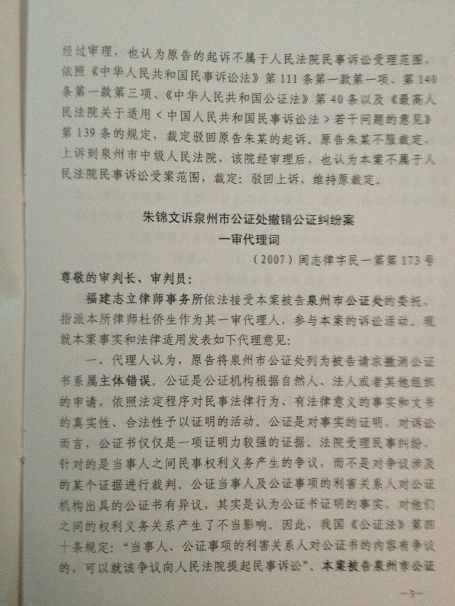 朱某公证纠纷案代理词案例