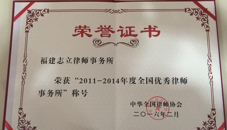 祝贺福建志立律师事务所荣获“全国优秀律师事务所”称号。