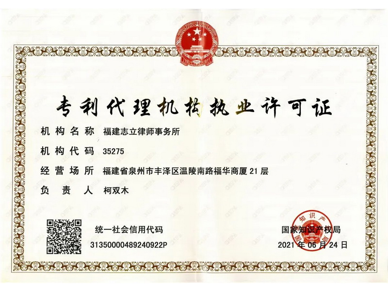 2021年6月24日,国家知识产权局向福建志立律师事务所颁发了《专利代理机构执业许可证》(机构代码35275),我所正式获得了专利代理机构资质,日后可以在全国范围内处理专利申请或者其他专利事务,依法开展专利法律服务,成为兼具律师事务所执业资质及专利代理资质的“双证”律师事务所。
